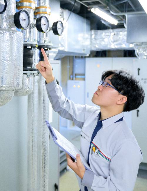 設備管理として点検やトラブル対応を担う。